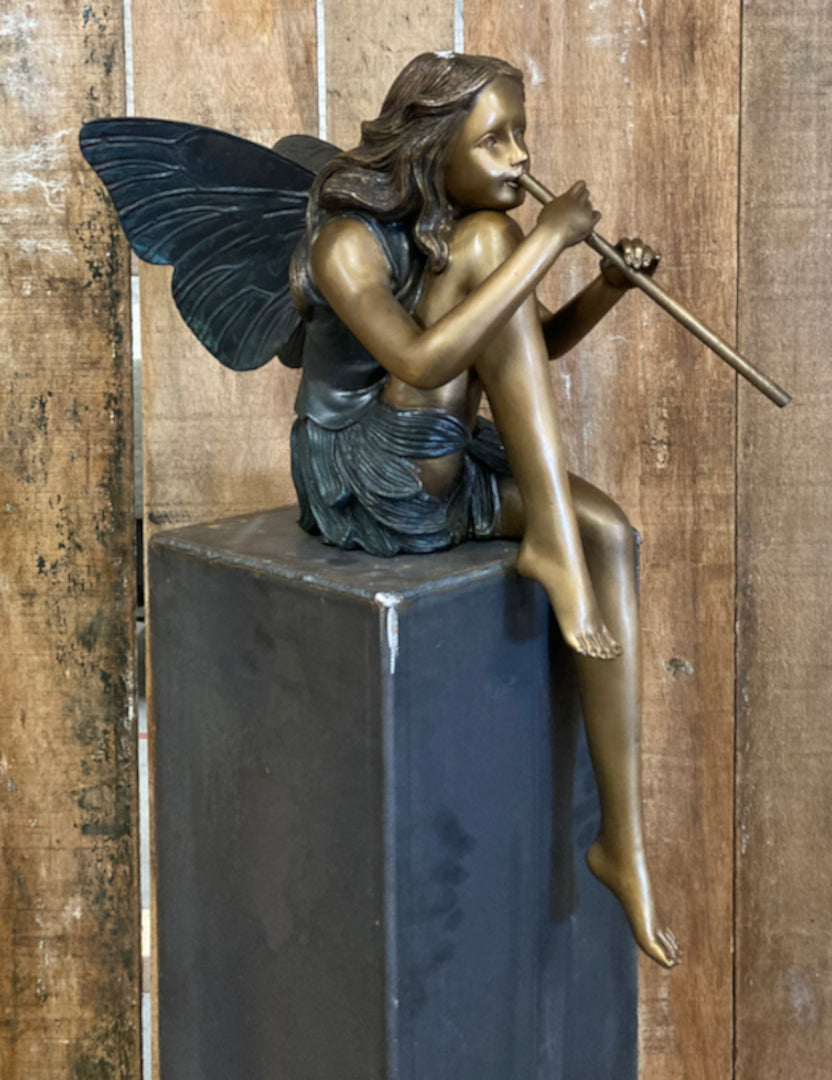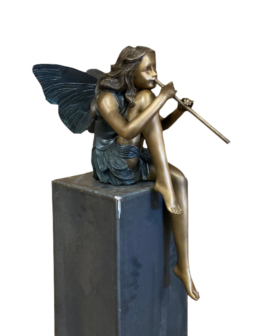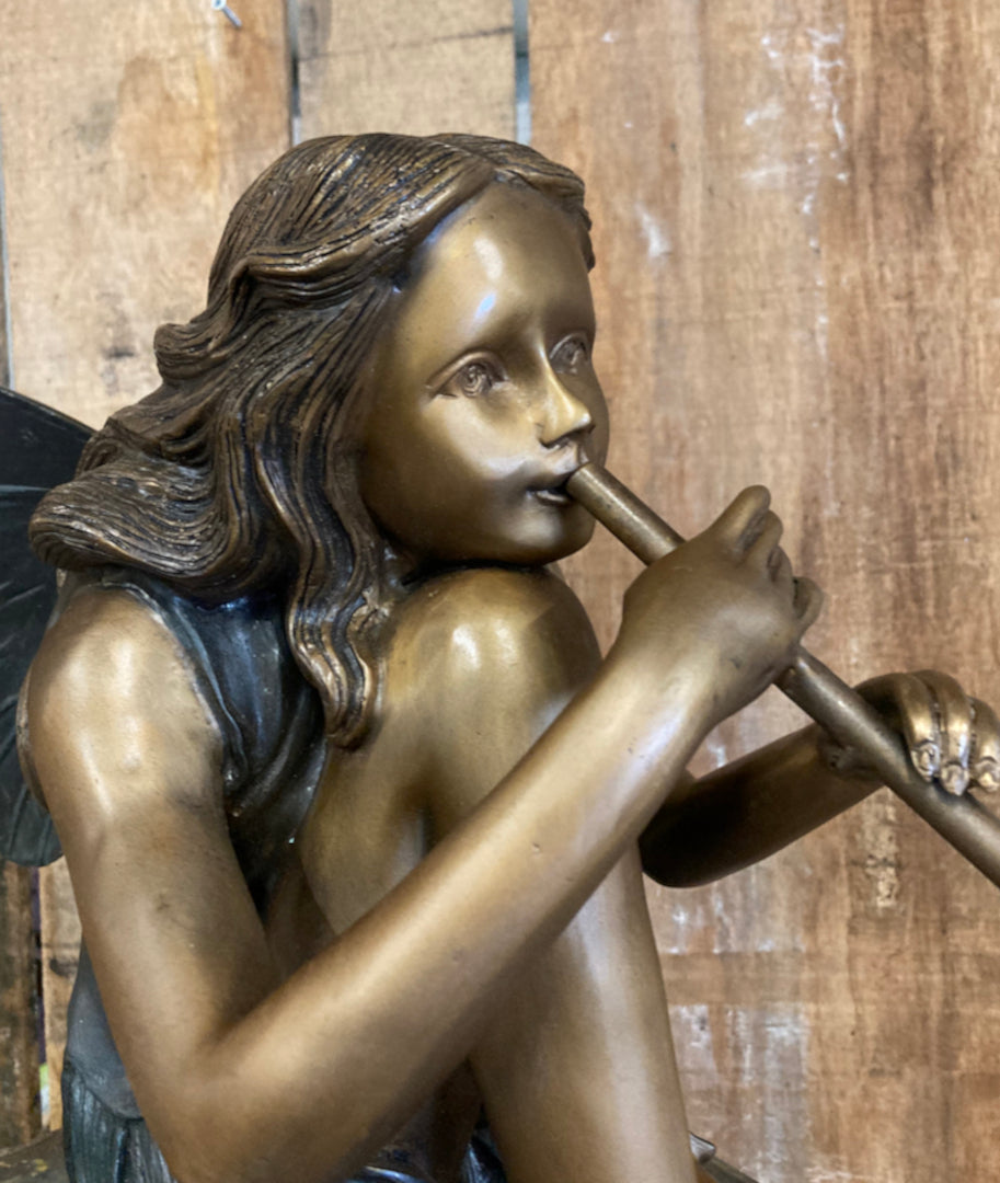 Bronze Skulptur " Fee mit Flöte" - cosmali-shop.com