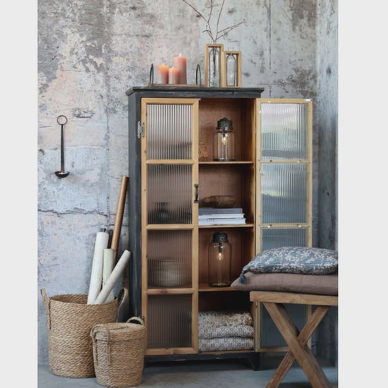 Landhaus Vitrine LUISE mit Riffelglastüren - Natur Holz & Vintage Schwarz
