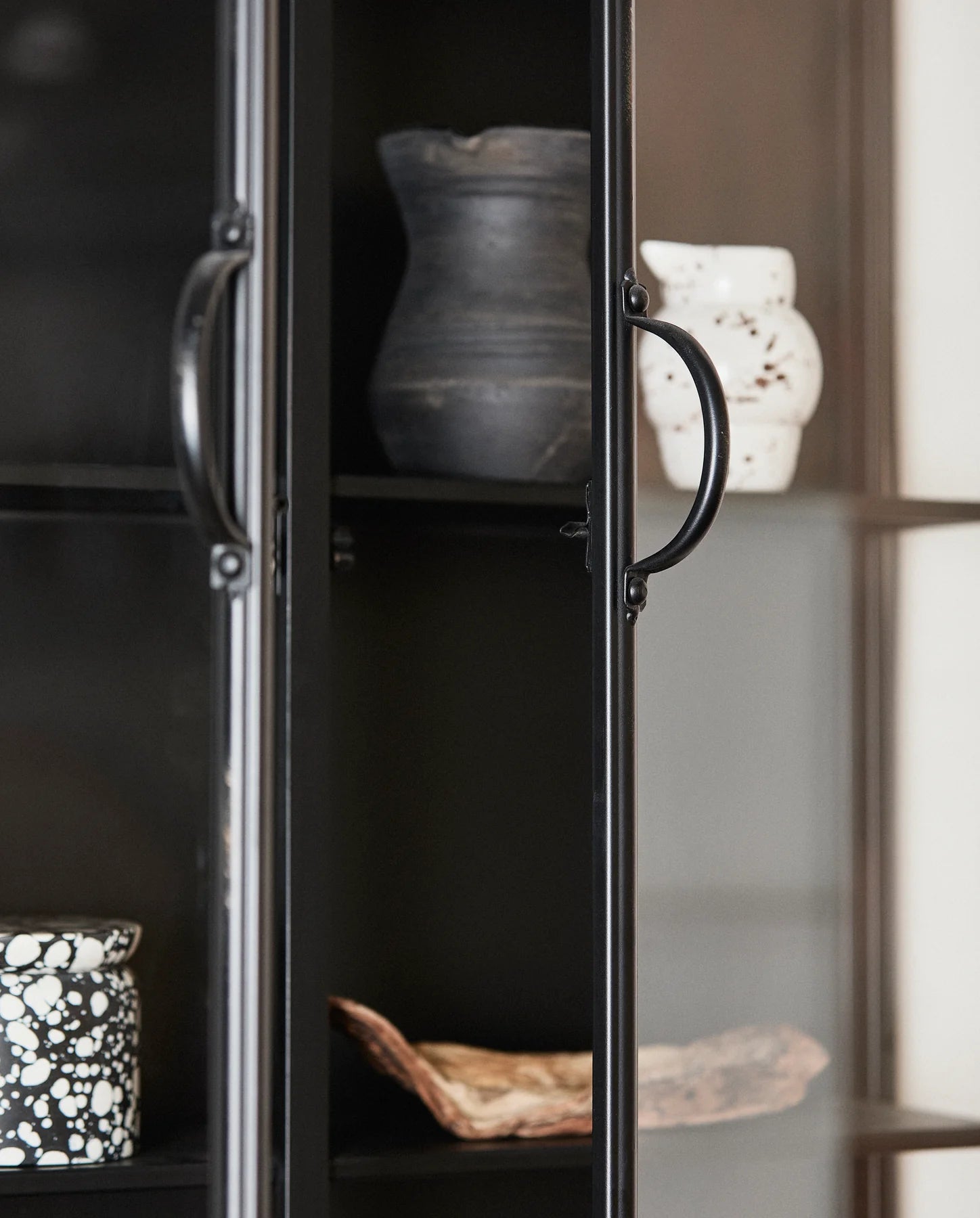 Wandvitrine BELLA schwarz Metall H 121 cm industrial